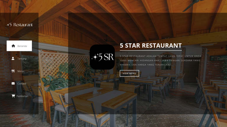 In the main hero section, the new 5 Star Restaurant (5SR) logo is presented in a professional way, accompanied by a short description of the restaurant’s identity. The background features an interior photo of the restaurant, creating a warm and authentic impression that allows visitors to instantly feel the dining atmosphere.